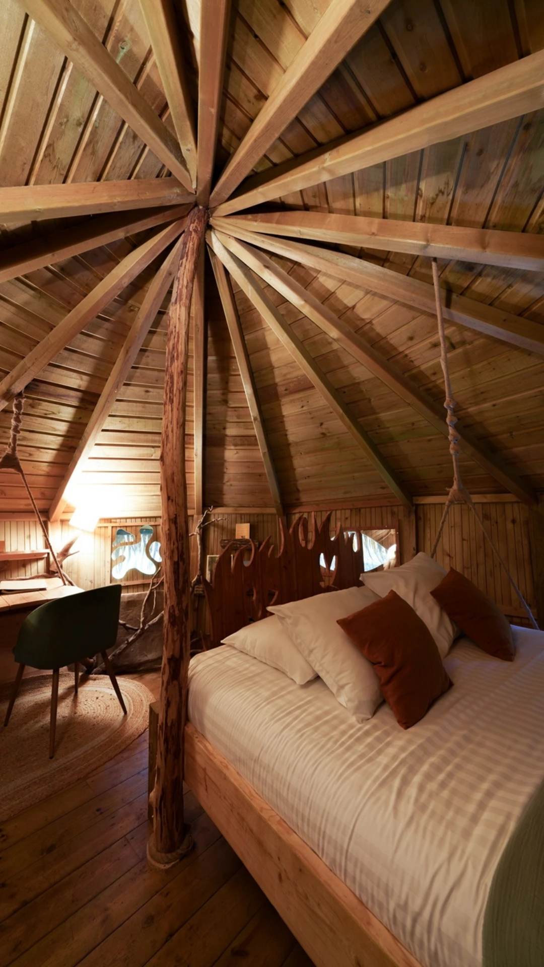 Perchée à 4 mètres du sol, la cabane Spa Rêveuse vous offre un doux mélange entre facilité d’accès et sensations de hauteur. Cette grande cabane peut accueillir 2 personnes dans un lit double.