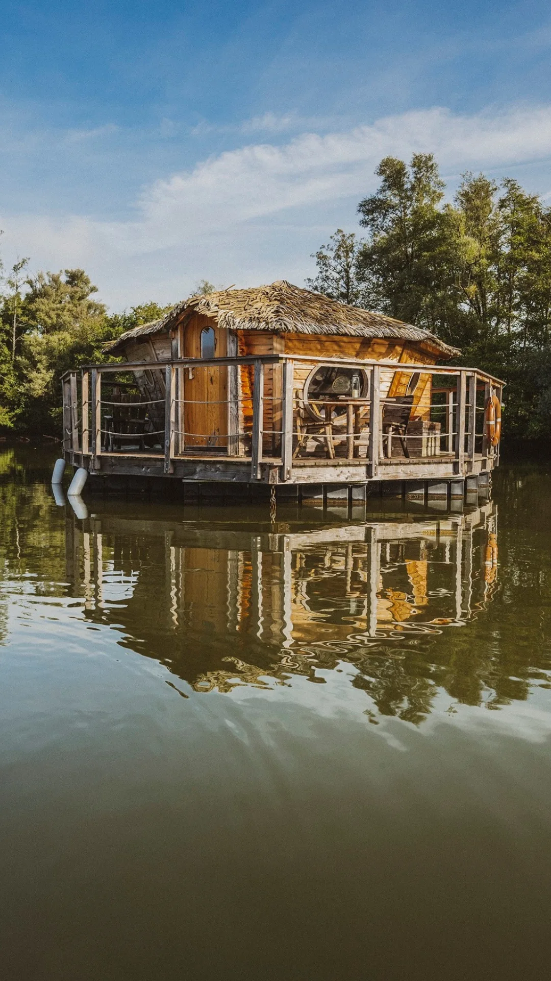 Die Hütte Spa Lagon heißt Sie zu einem ungewöhnlichen und romantischen Erlebnis inmitten der Großen Seen in Bourgogne-Franche-Comté willkommen. Mit dem Boot erreichbar, rutschen Sie auf dem Wasser, bevor Sie Ihr schwimmendes Nest erreichen. Für Ihren größten Komfort Ein beheiztes nordisches Bad erwartet Sie auf der Terrasse.